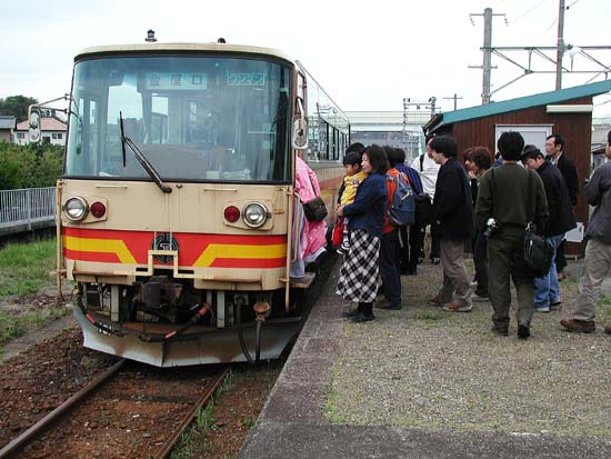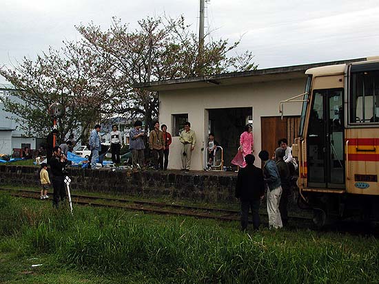 宴の後は、臨時便で金屋口へ。HMも誇らしげに、つかの間の貸切列車の旅。