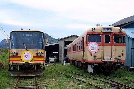 金屋口では、まるみちゃんことキハ58003とハイモを並べて記念撮影。キハ58003の車内にも入ることが出来、短い時間ながらも皆さん思い思いに過ごされてました。